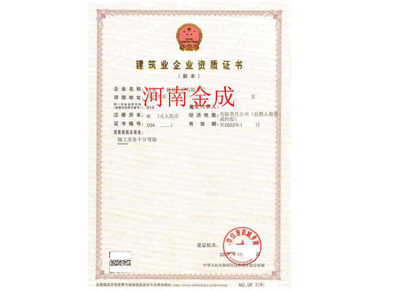 • 建筑業企業資質證書副