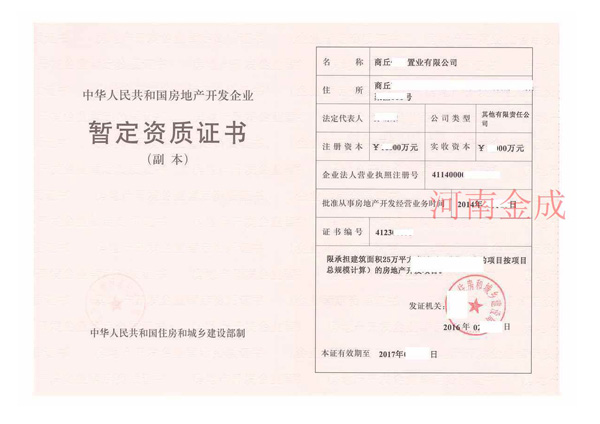 • 4.鄭州房地產開發資質代辦多少錢暫定級如何延期
